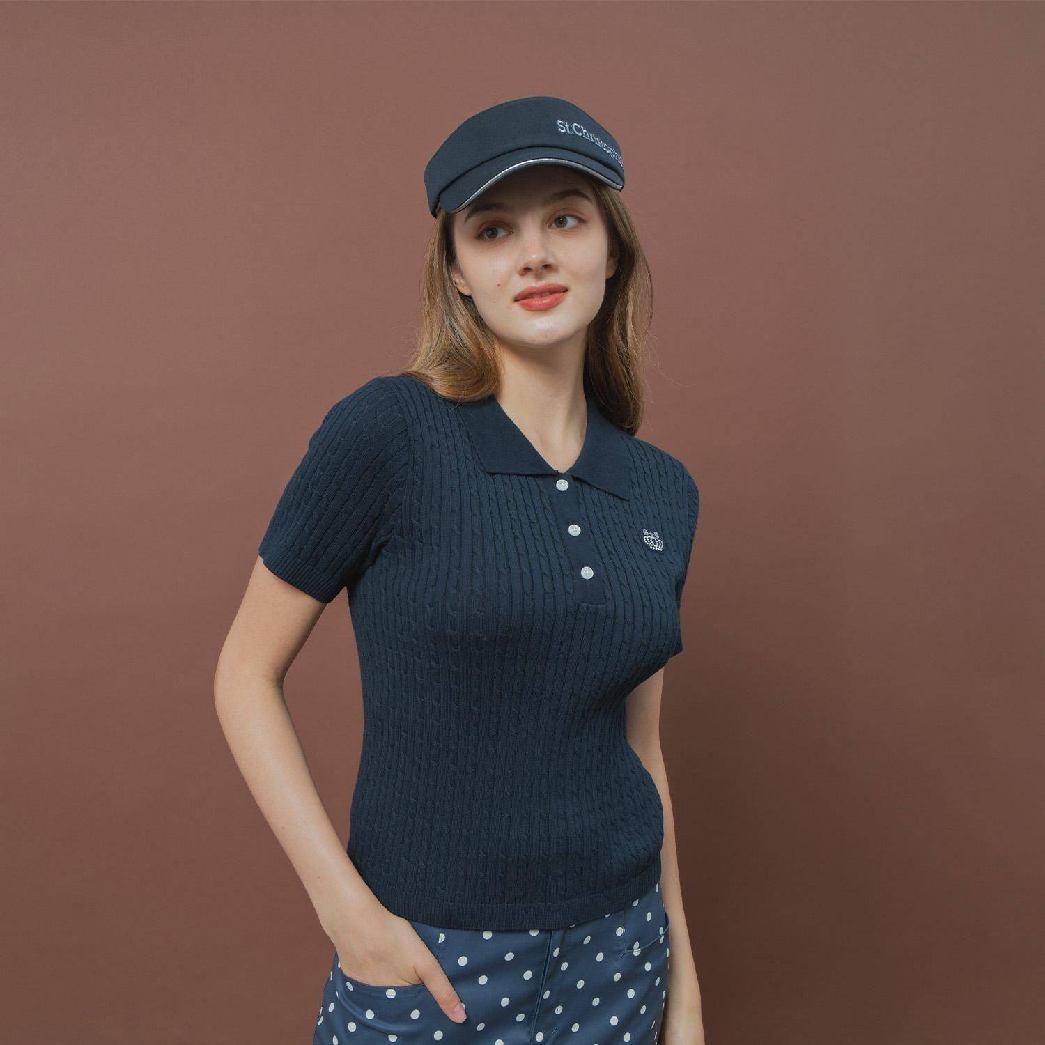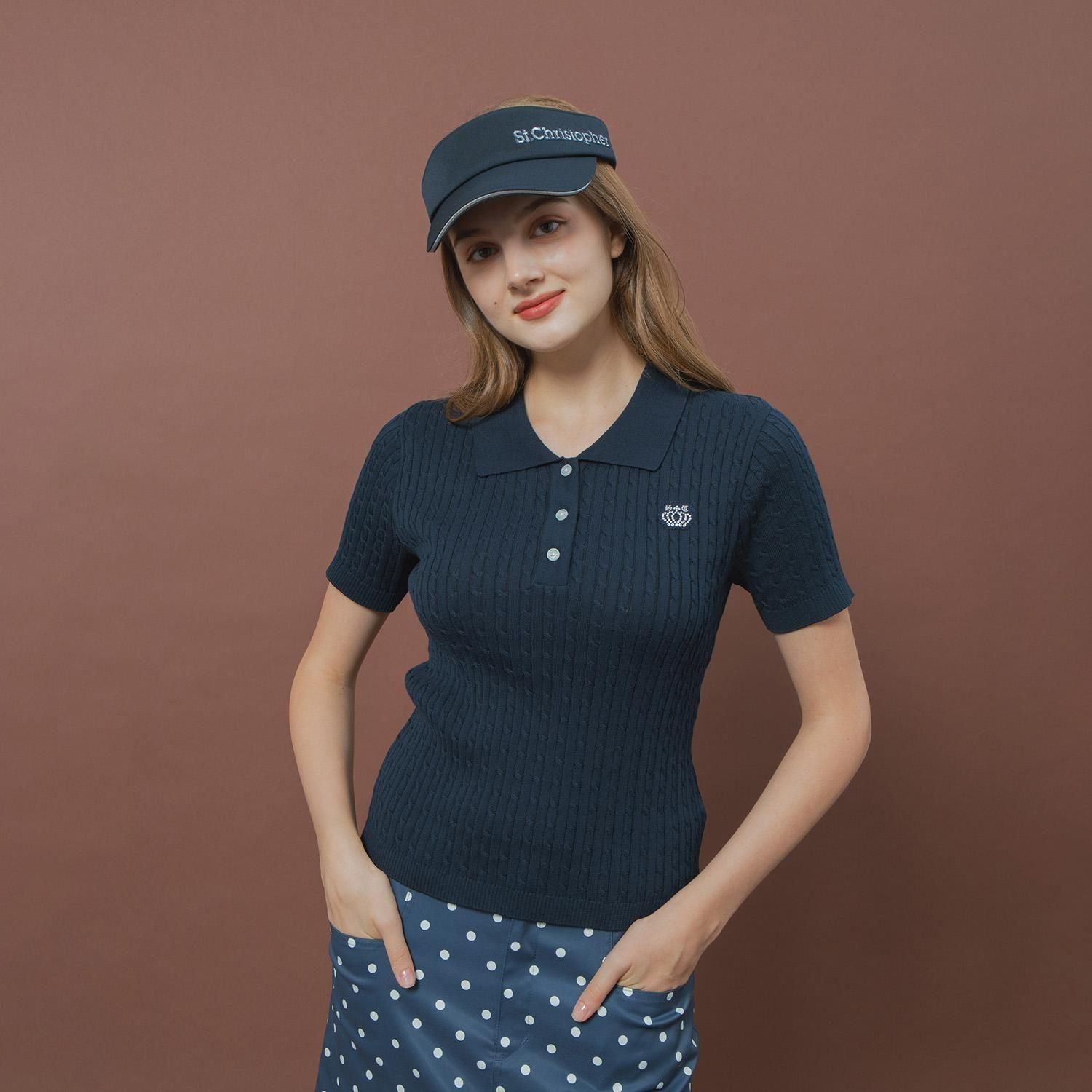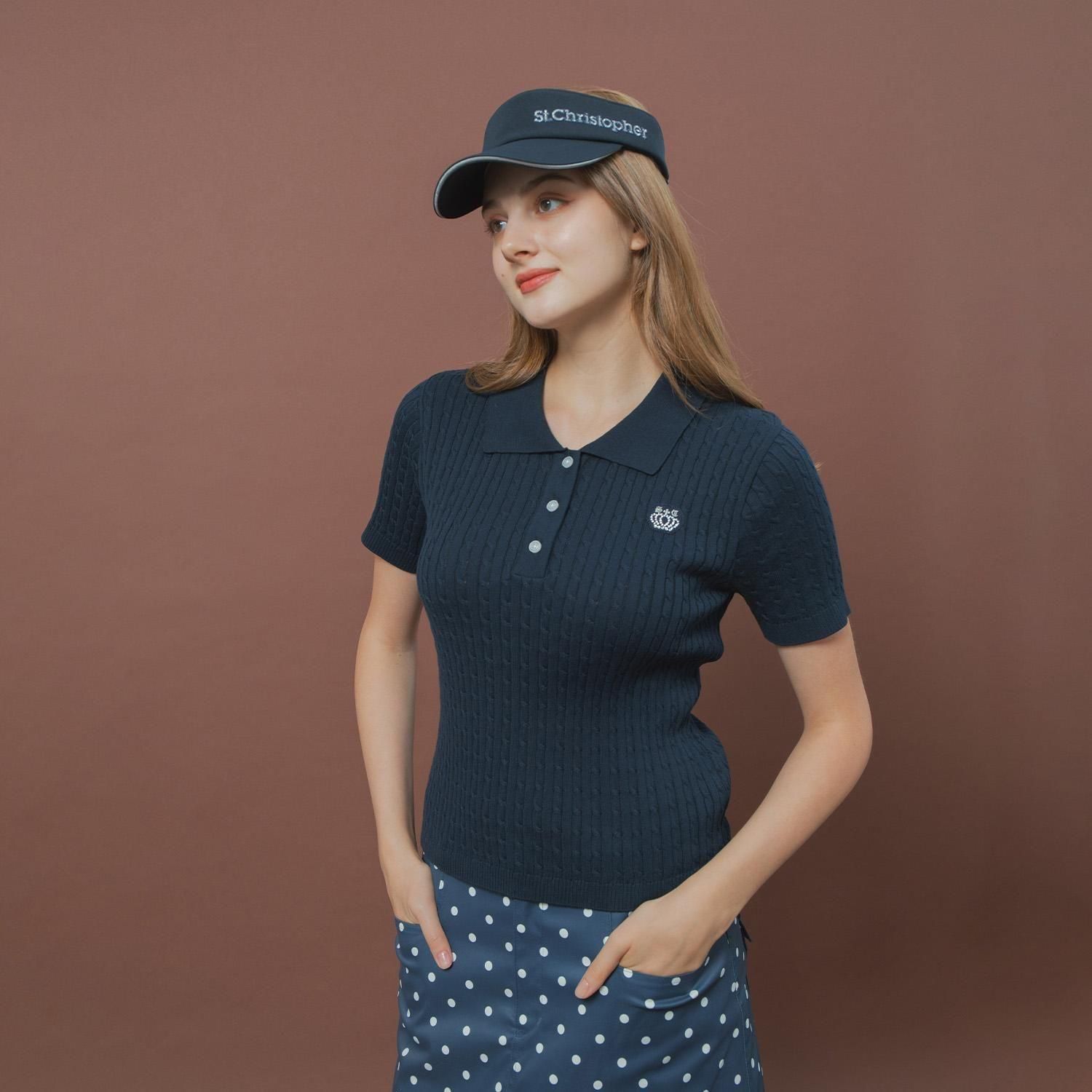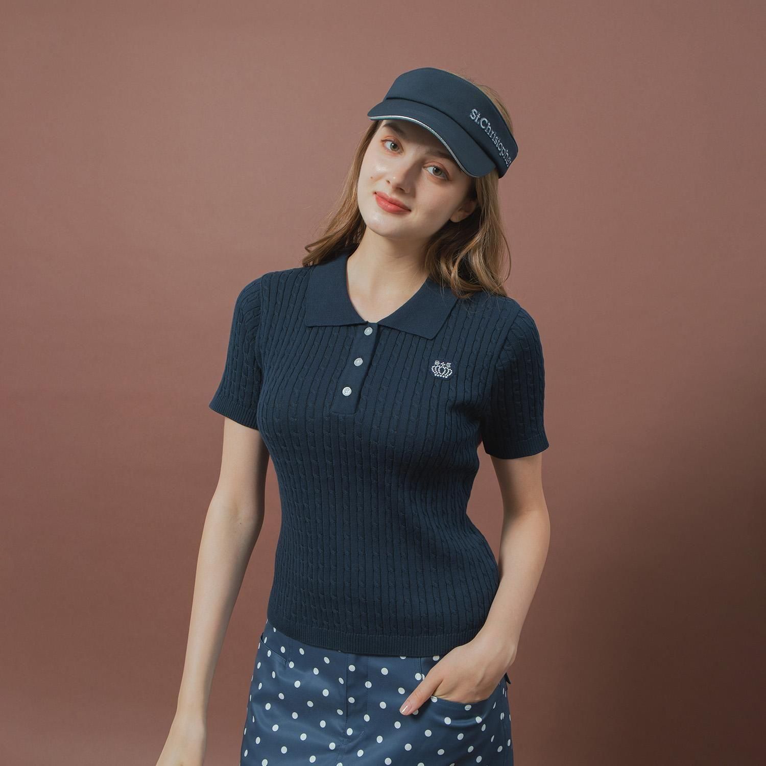 ケーブルニットポロシャツ