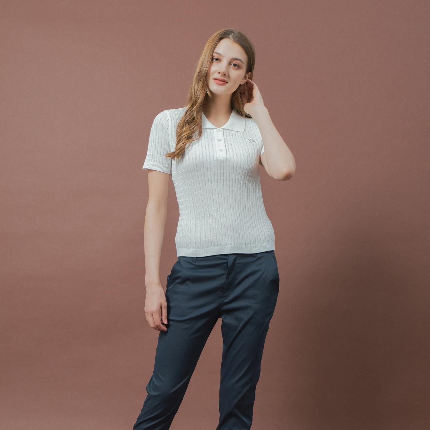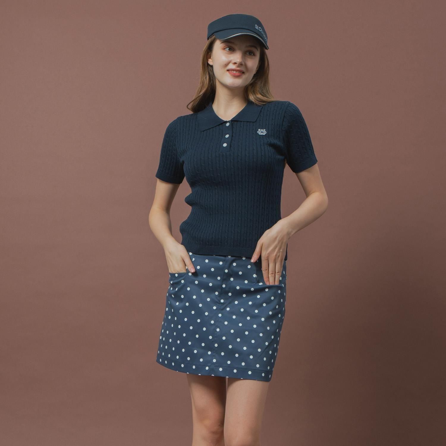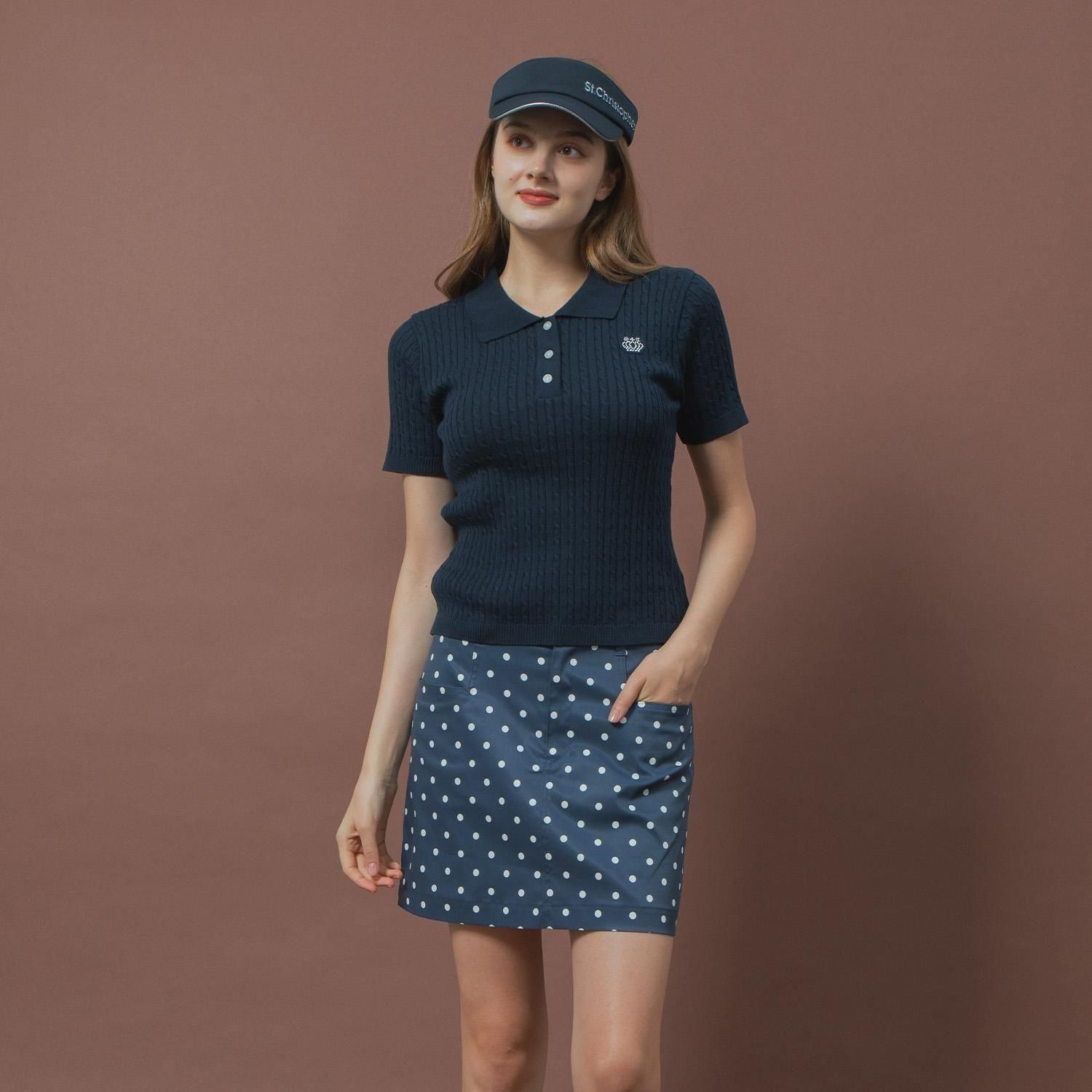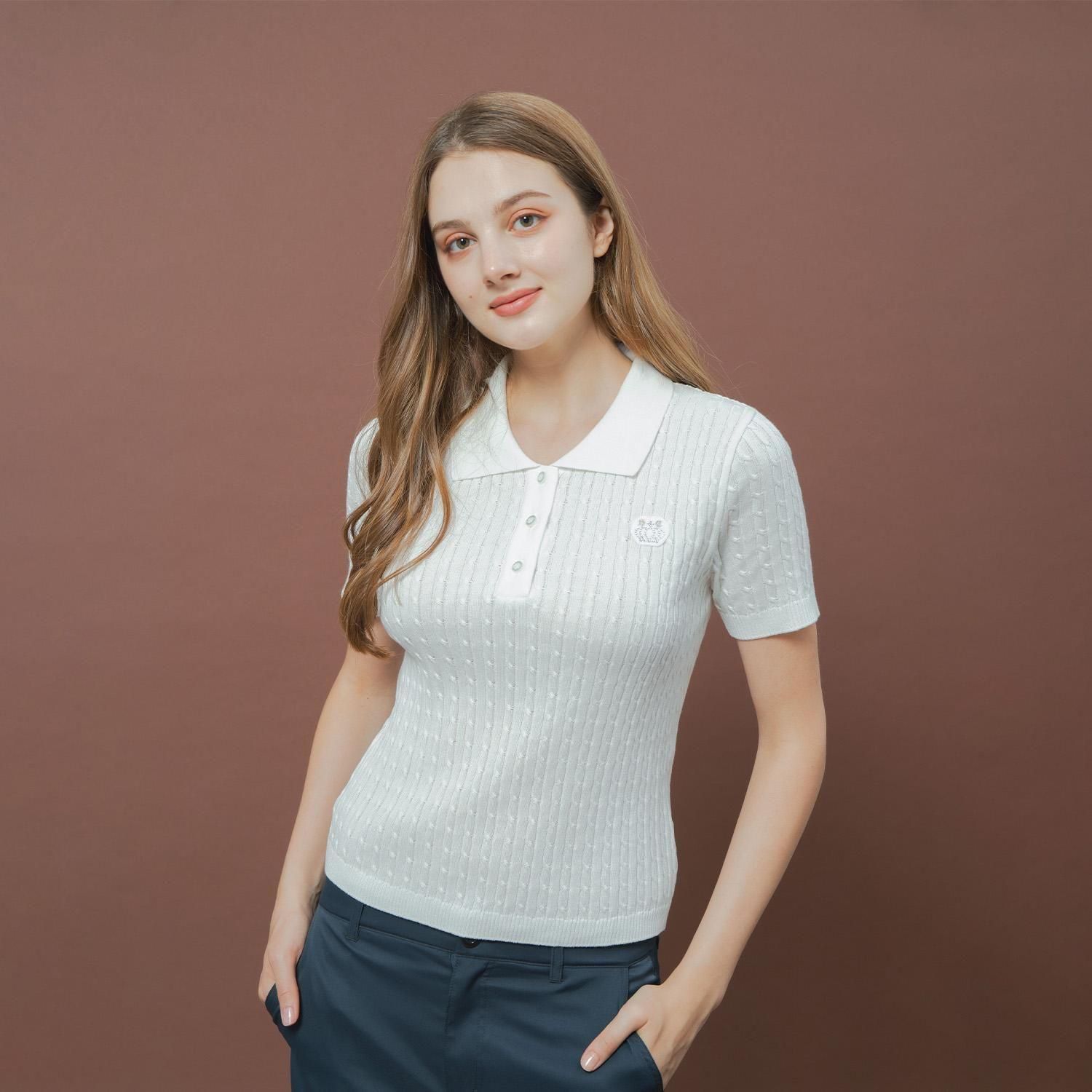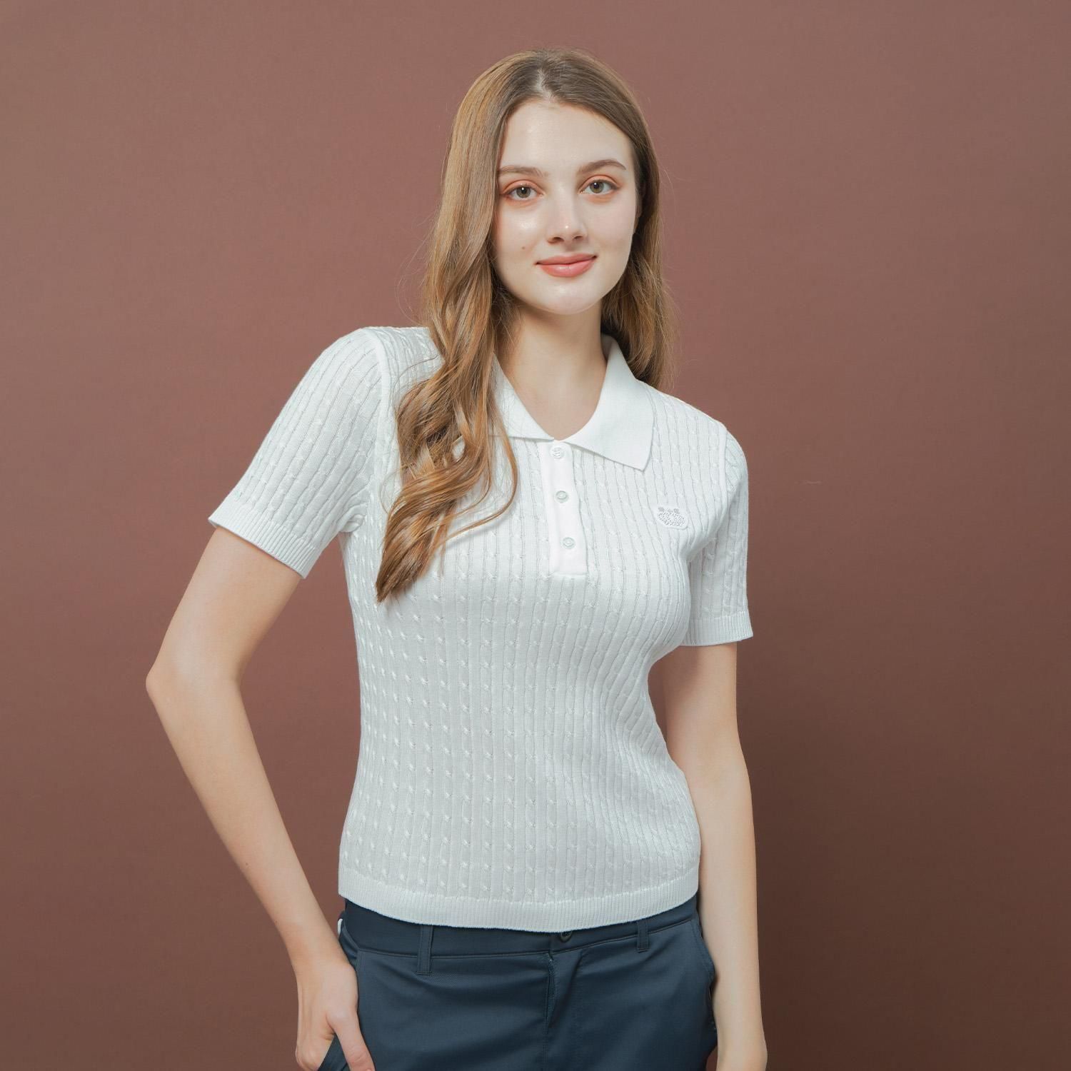 ケーブルニットポロシャツ