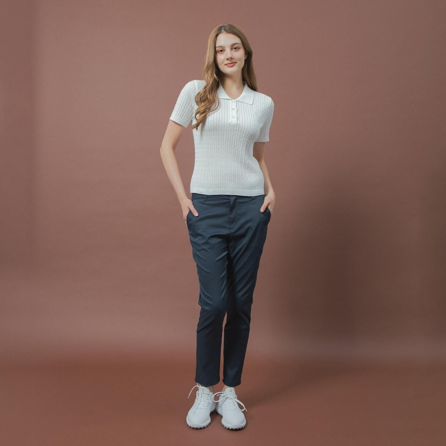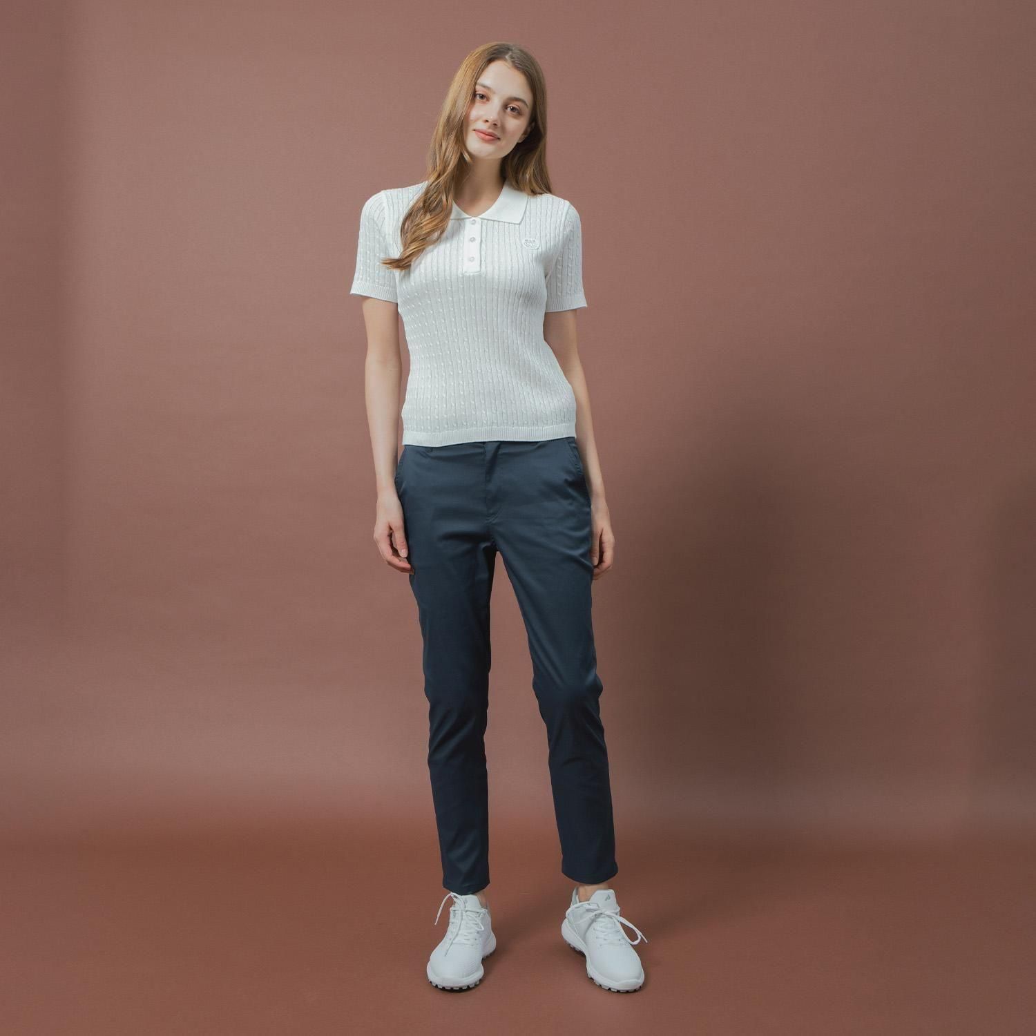 毛羽立ちの少ない、滑らかで均一な糸を使用した、ケーブル編みの半袖ニットポロシャツです。9月に入り、秋のスタイリングを楽しみたい一方で、まだ暑さの残るこの時季にぴったりの1枚。秋らしい見た目を意識しつつも、軽やかに仕上げた”季節の境目”に活躍するアイテムです。
