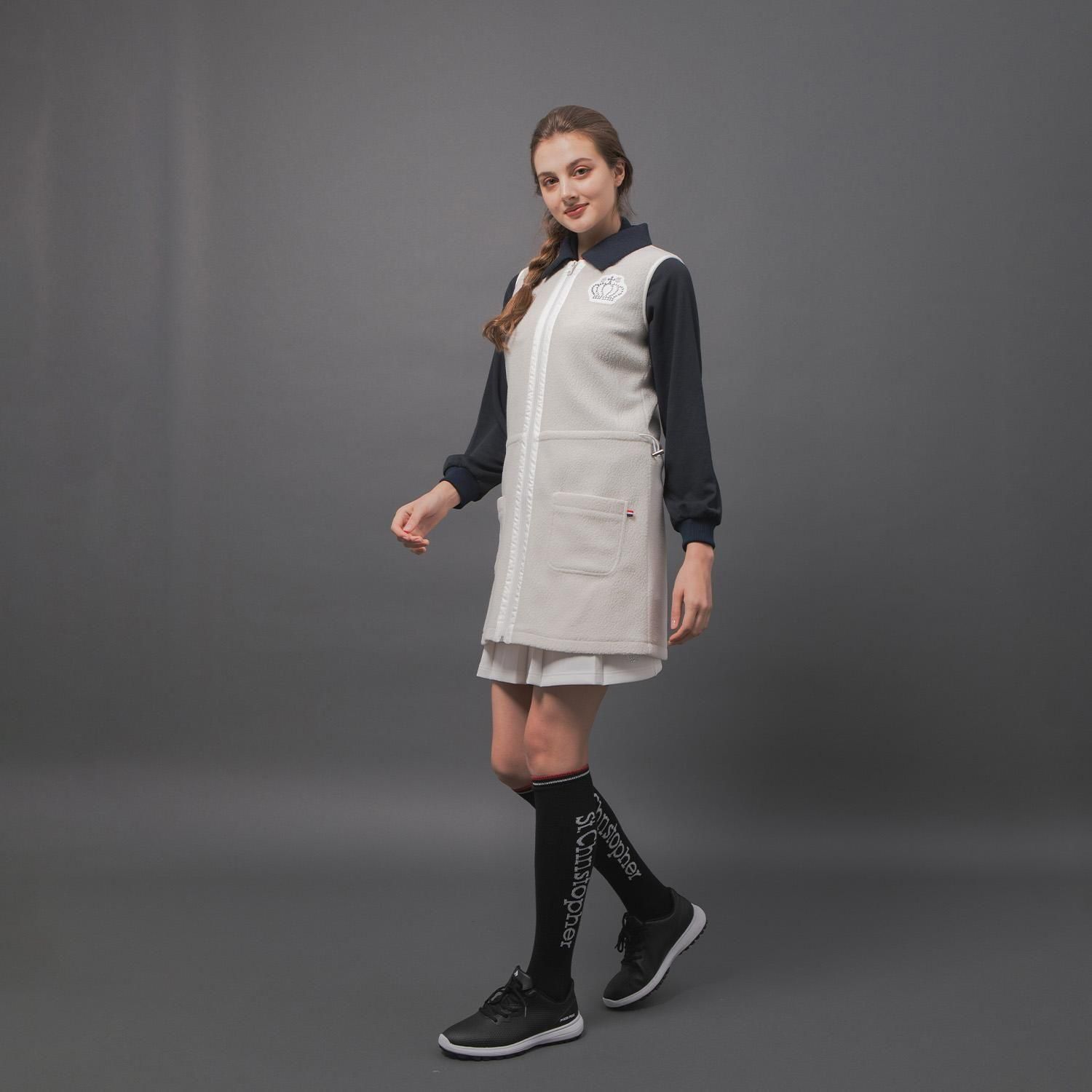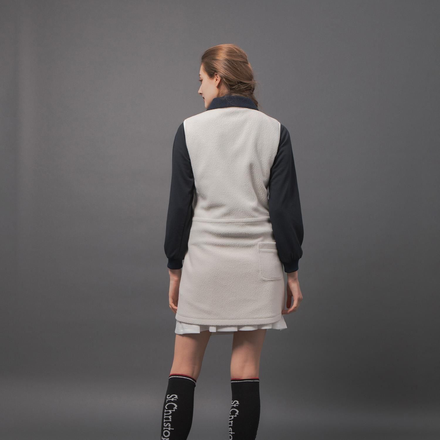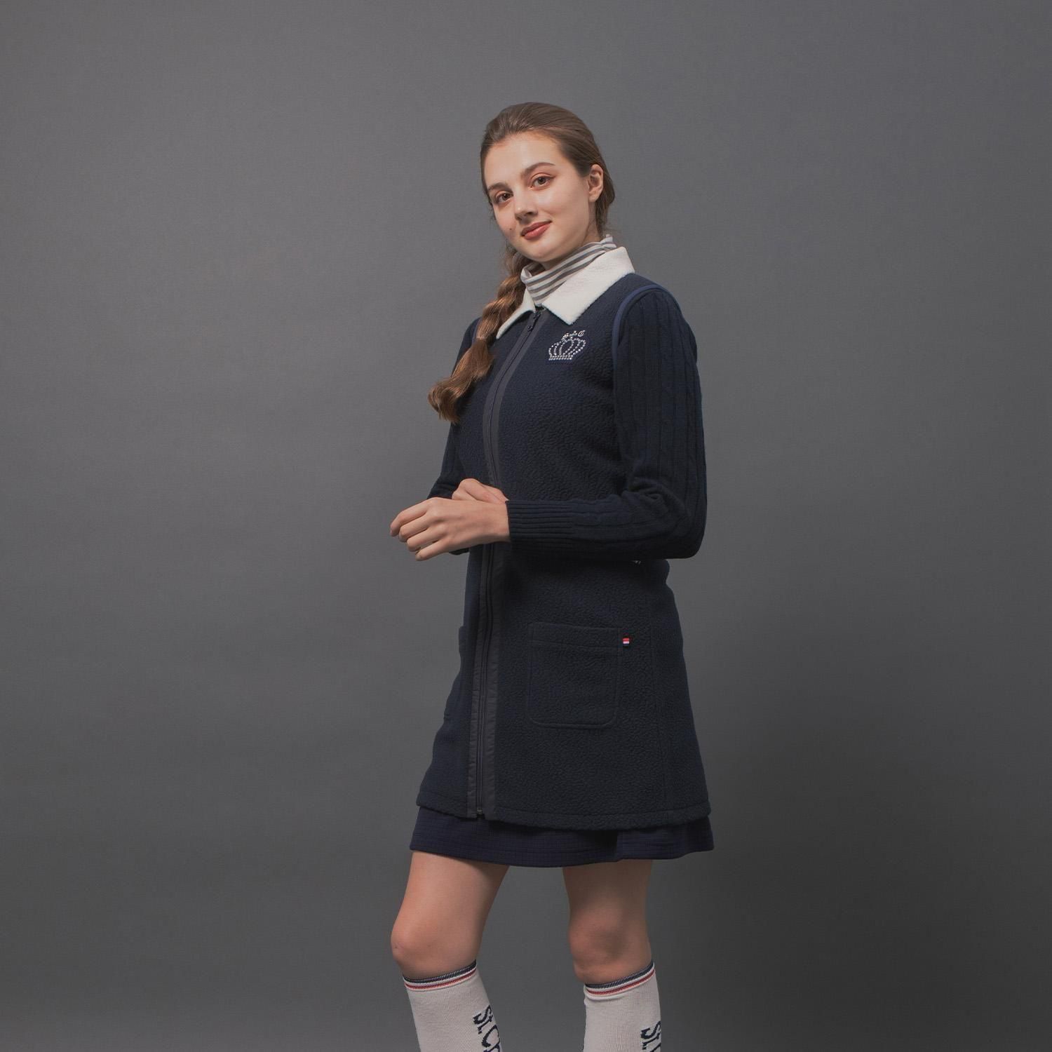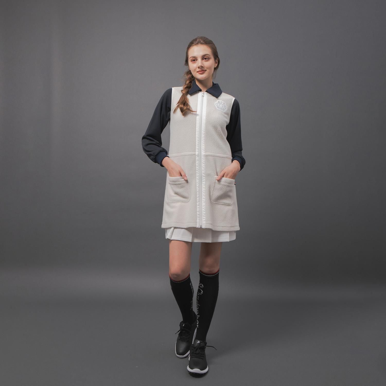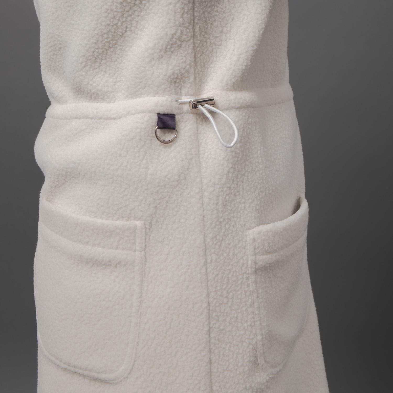 ワンピースのようにボトムまでしっかり覆える、ロング丈のフリースブルゾンです。ストレッチ性・軽量性・保温性に優れたボアフリース素材を使用し、真冬でも1日中ストレスフリーな着心地が魅力的です。上半身から下半身までしっかりと包み込む防寒シルエットながら、ウエストはドロスト仕様で調整可能。お好みに合わせてウエストを絞ることで、動きやすさと美しいシルエットの両方を叶えます。袖をベストにしたデザインや、伸縮性に富んだ軽量素材により、着たままでも快適にスイングが可能です。