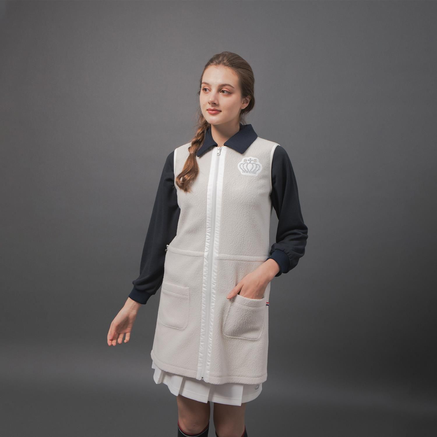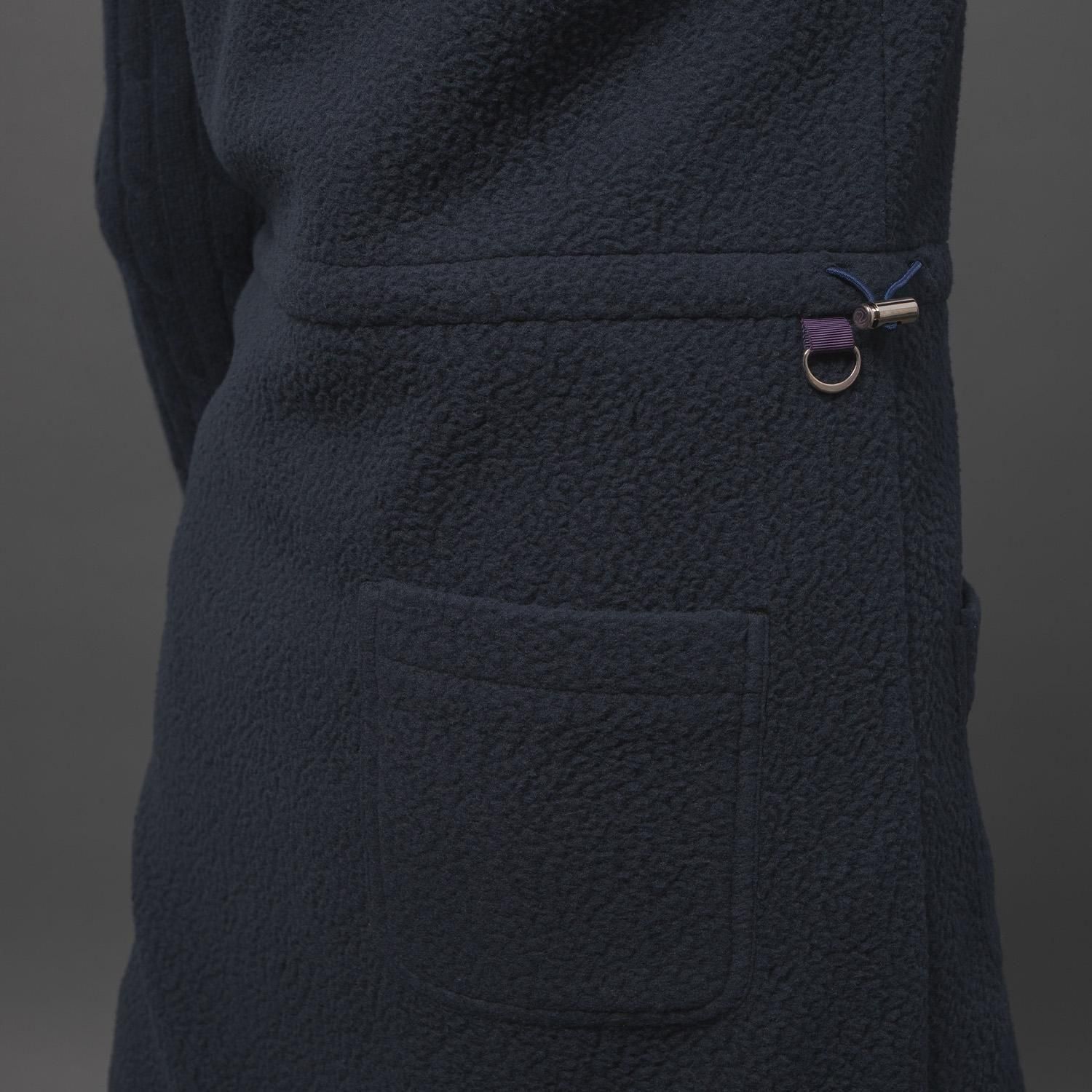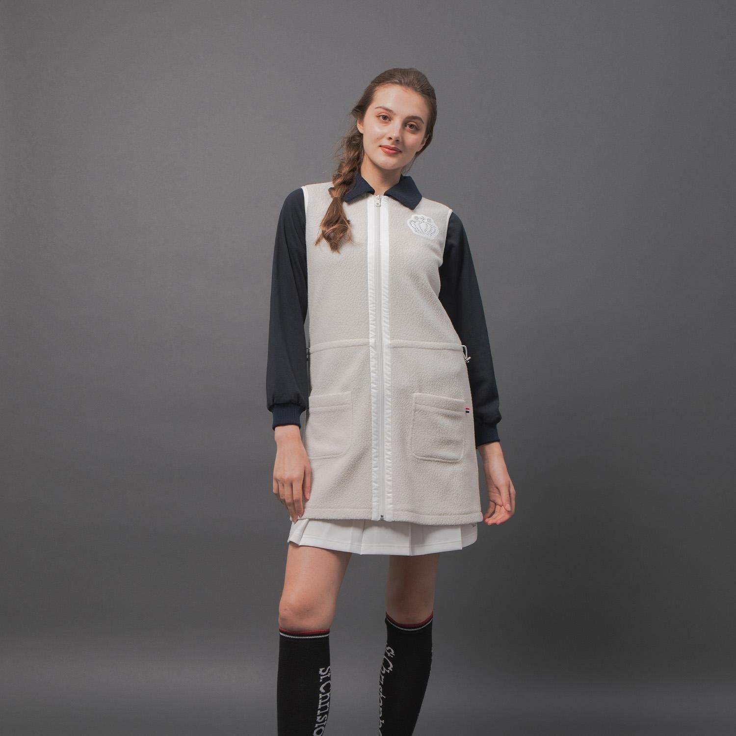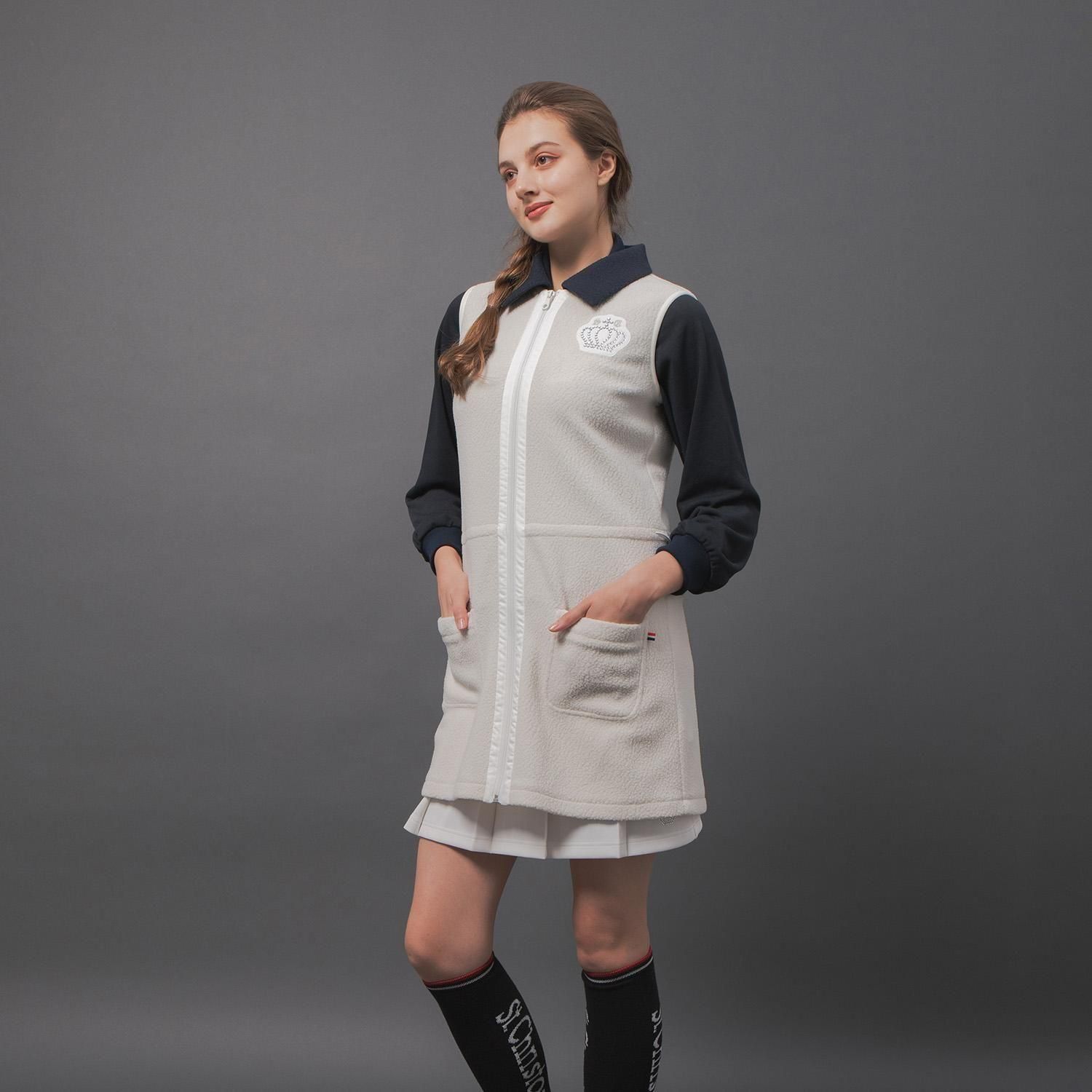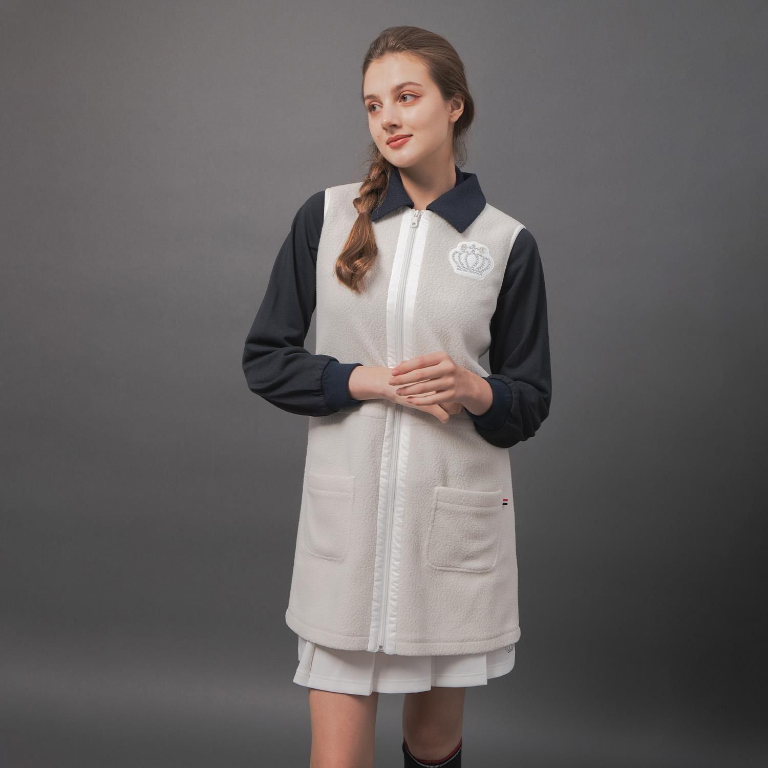 ワンピースのようにボトムまでしっかり覆える、ロング丈のフリースブルゾンです。ストレッチ性・軽量性・保温性に優れたボアフリース素材を使用し、真冬でも1日中ストレスフリーな着心地が魅力的です。上半身から下半身までしっかりと包み込む防寒シルエットながら、ウエストはドロスト仕様で調整可能。お好みに合わせてウエストを絞ることで、動きやすさと美しいシルエットの両方を叶えます。袖をベストにしたデザインや、伸縮性に富んだ軽量素材により、着たままでも快適にスイングが可能です。