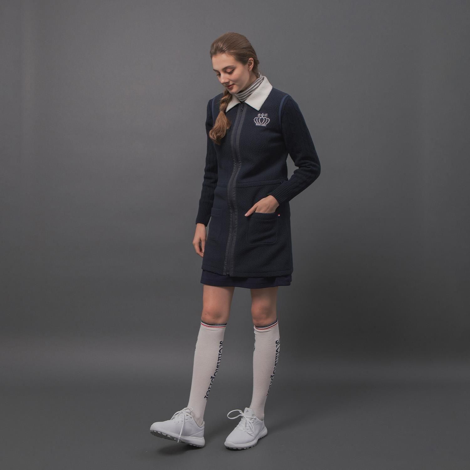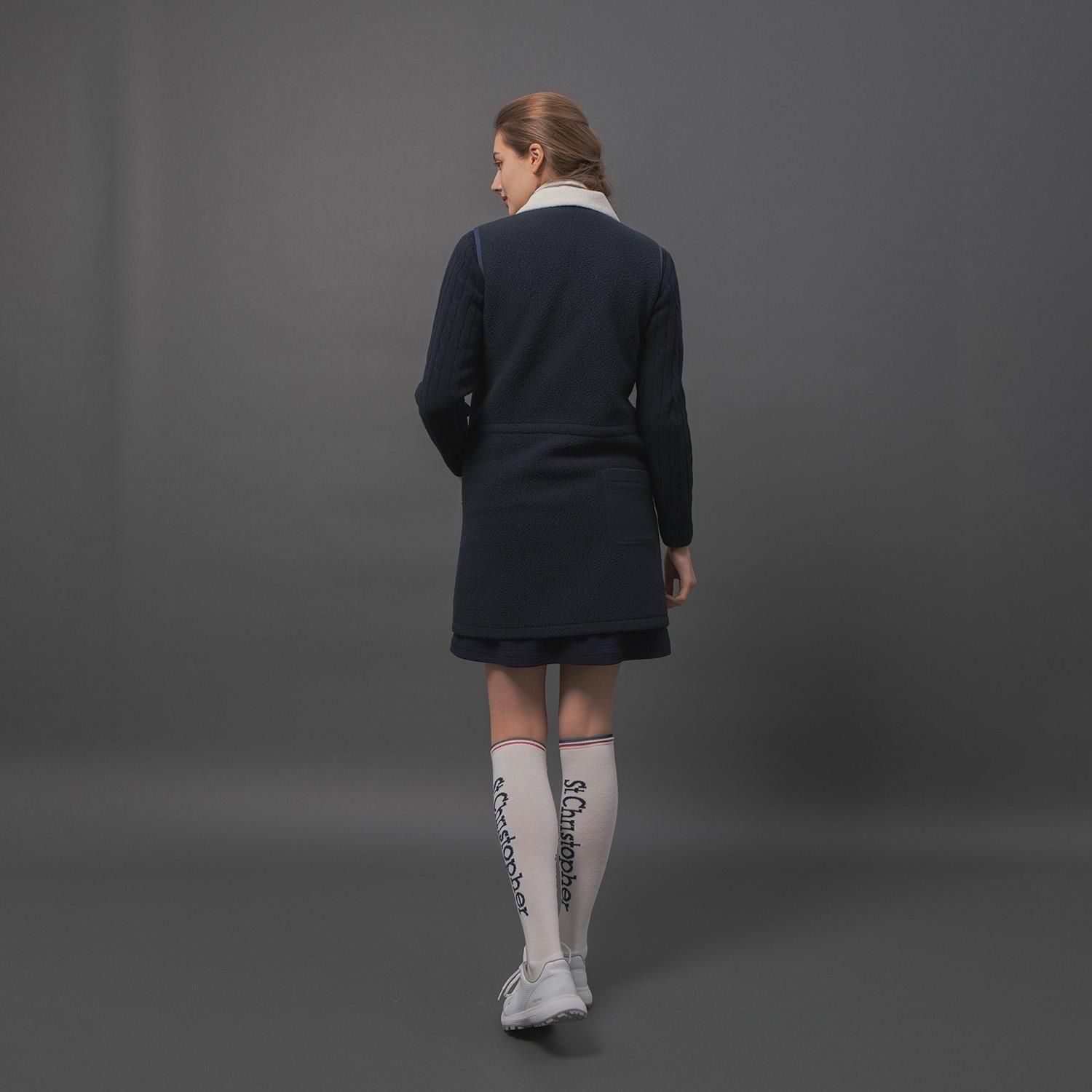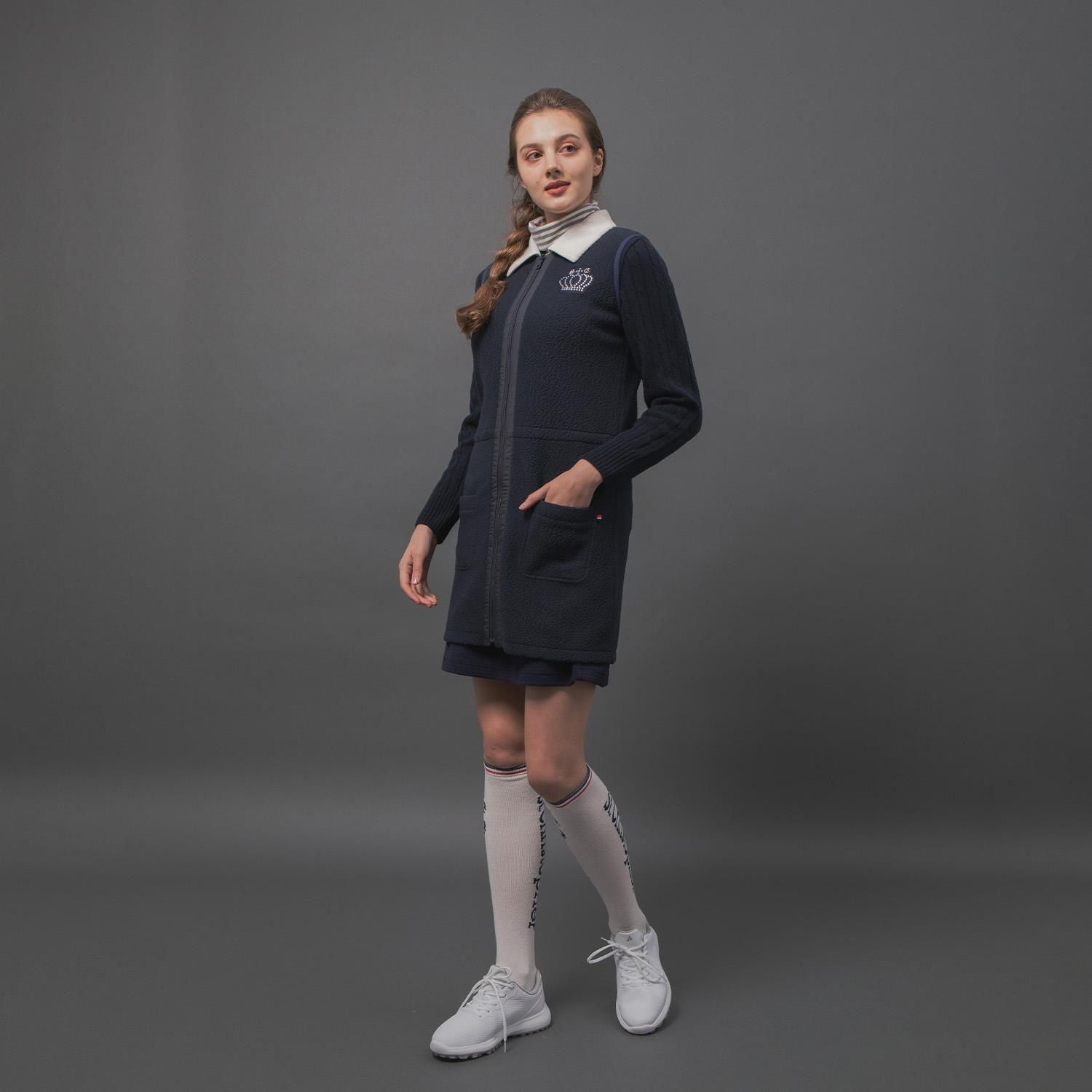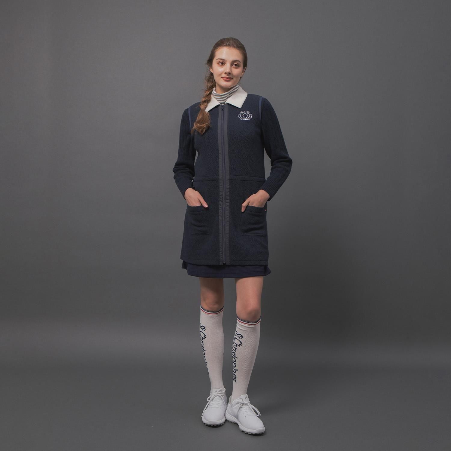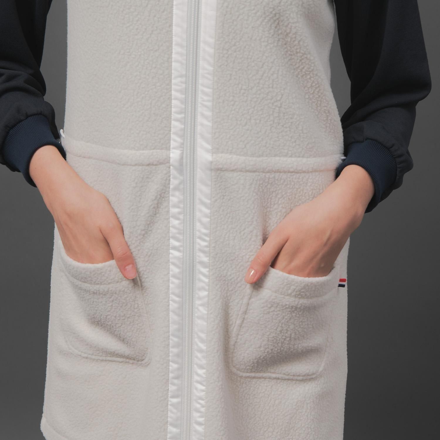ワンピースのようにボトムまでしっかり覆える、ロング丈のフリースブルゾンです。ストレッチ性・軽量性・保温性に優れたボアフリース素材を使用し、真冬でも1日中ストレスフリーな着心地が魅力的です。上半身から下半身までしっかりと包み込む防寒シルエットながら、ウエストはドロスト仕様で調整可能。お好みに合わせてウエストを絞ることで、動きやすさと美しいシルエットの両方を叶えます。袖をベストにしたデザインや、伸縮性に富んだ軽量素材により、着たままでも快適にスイングが可能です。
