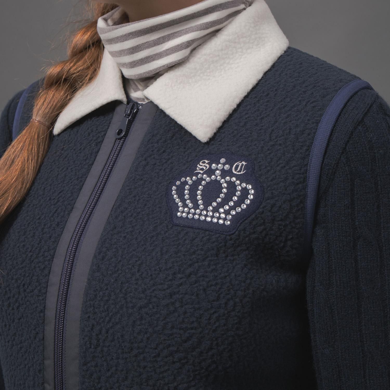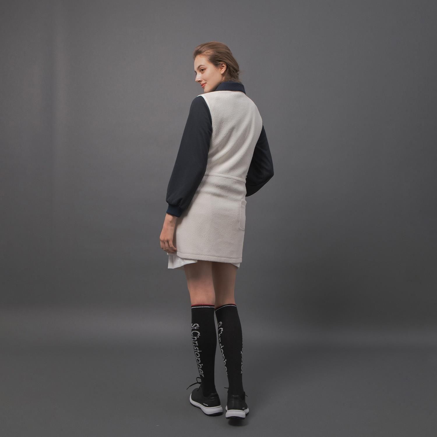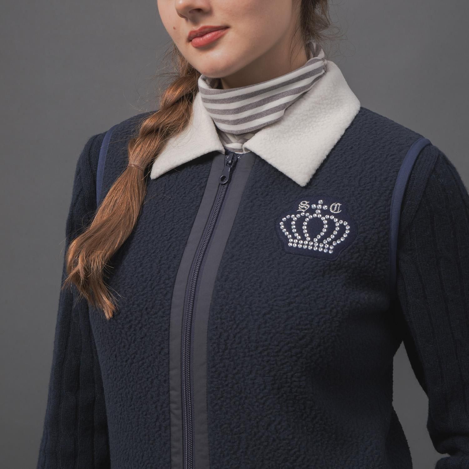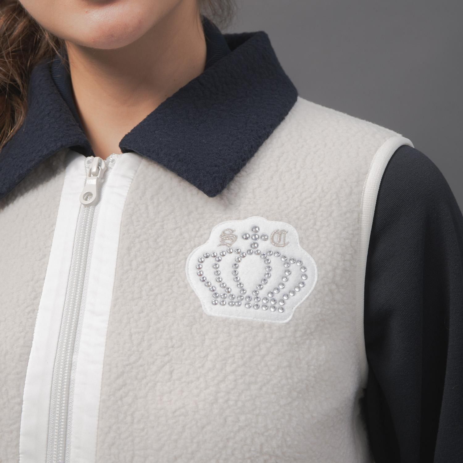 シンプルで合わせやすいデザインながら、衿元の配色や胸元の特大ラインストーンロゴなど、ディテールへのこだわりも光ります。機能美・デザイン美を両立したセントクリストファーらしい、上品で洗練された一着です。