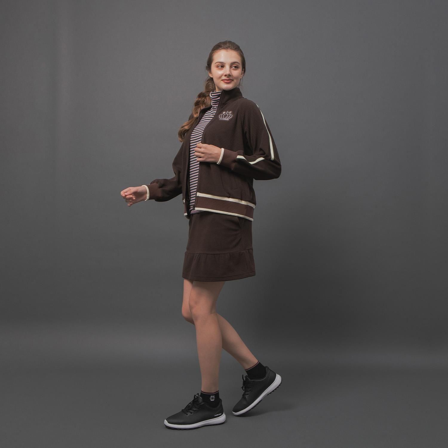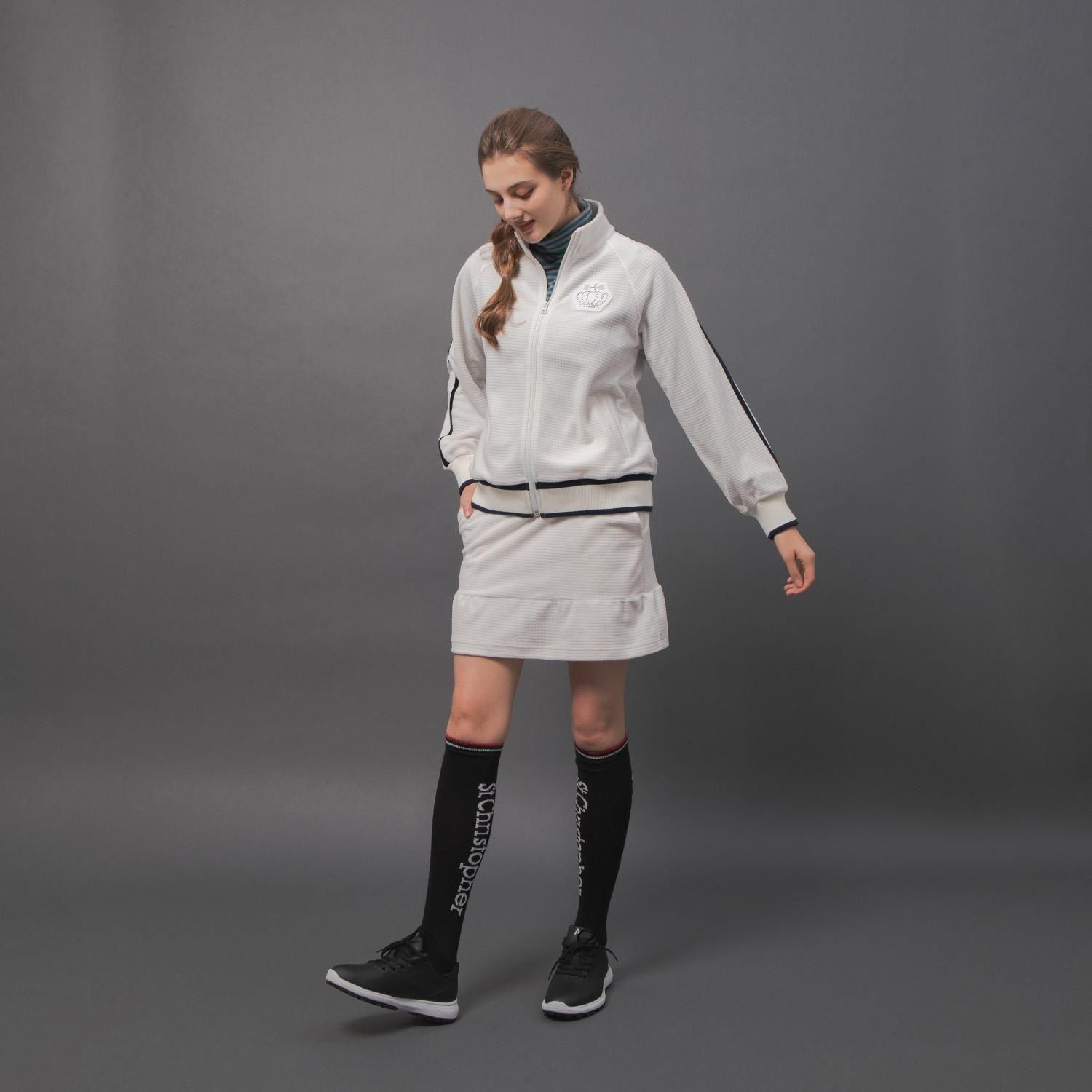 中に厚手のインナーも着込めるように胸や袖周りに程よいゆとりを持たせつつ、袖口と裾にギャザーを入れることで、無駄のないメリハリのある美しいラインに。同素材で作られたチェックフリーススカートとセットアップでの着用はもちろんのこと、幅広いアイテムとも相性がよく、様々なスタイリングにおすすめです。