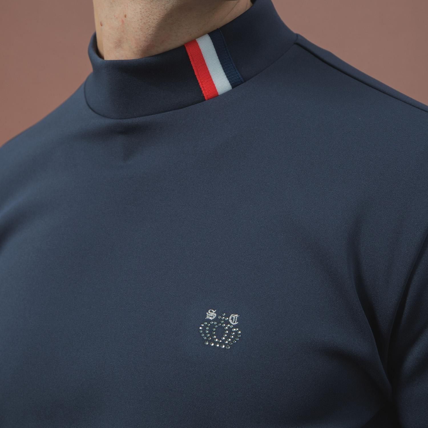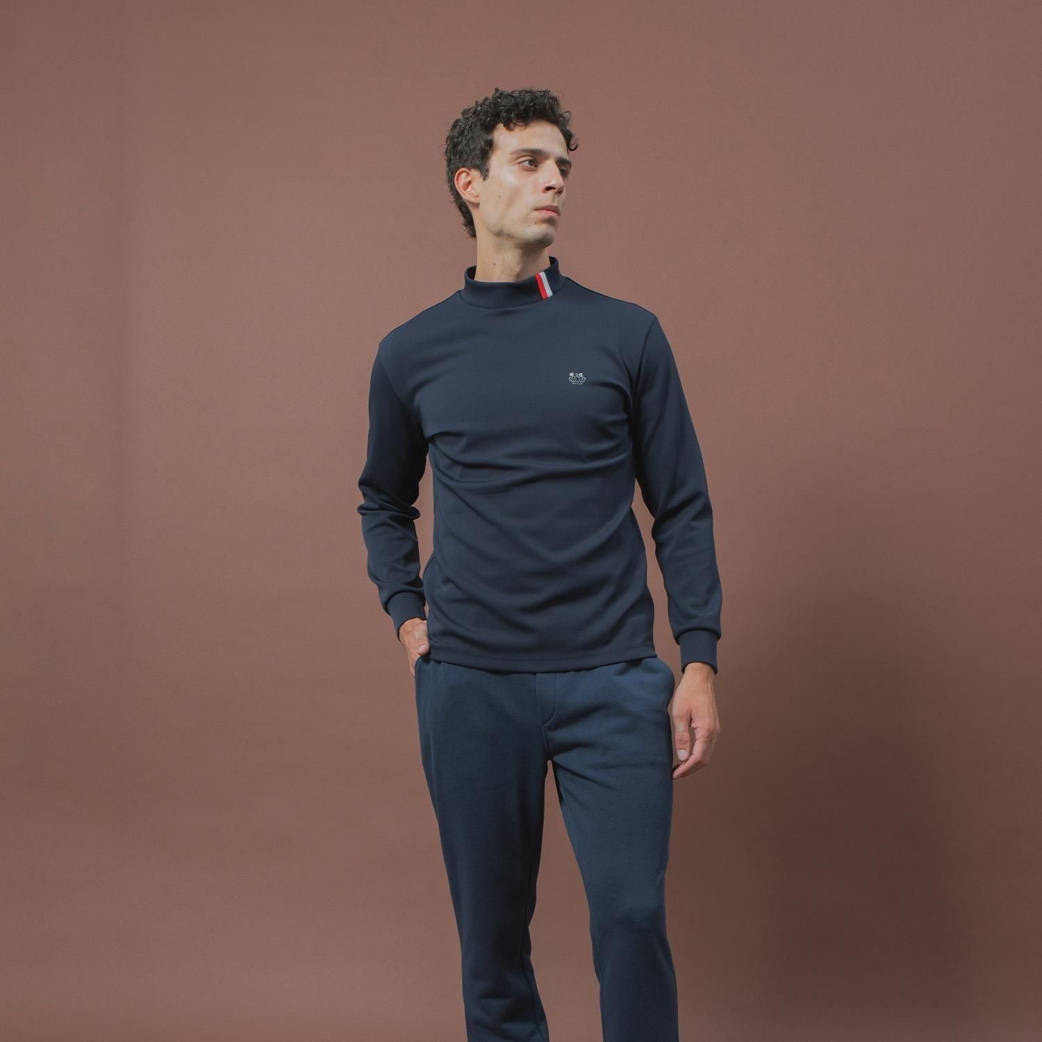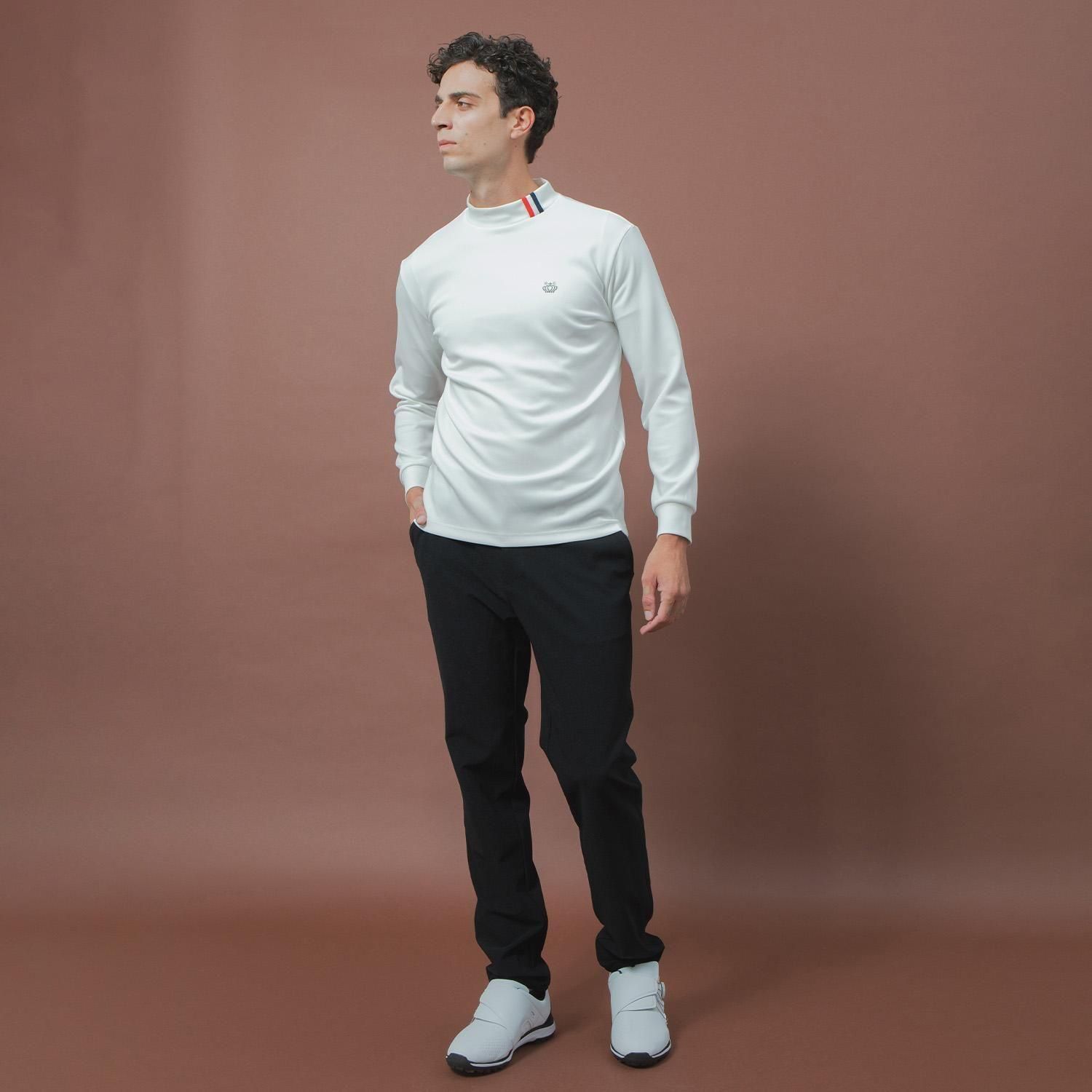 全方向にしなやかに伸びる、360°ストレッチ素材を使用したモックネックシャツです。その伸縮性が最大の魅力で、身体の動きにどこまでもフィットし、プレー中のあらゆる動きを1日中サポート。また、肌触りが滑らかなので、長時間のラウンドでも快適さを保ち、ストレスフリーな着心地に。そして、胸元から裾にかけて、無駄なふくらみをそぎ落としたスマートなシルエットで、スイング時に引っかかることなく、動作に干渉しない構造で、機能性とシルエット美を両立しています。随所に施された加工ディテールや、襟元にあしらった配色が、洗練されたアクセントに。一枚で主役になる存在感がありながら、インナーとしてもスタイリングにさりげない奥行きをプラスします。トリコロールのアクセントが控えめながら印象的に映え、シンプルでありながら品格を感じさせる一着に。秋のゴルフシーンにちょうど良い生地感と快適性を備え、季節の変わり目に頼れる一枚です。