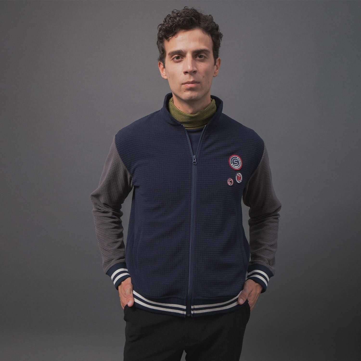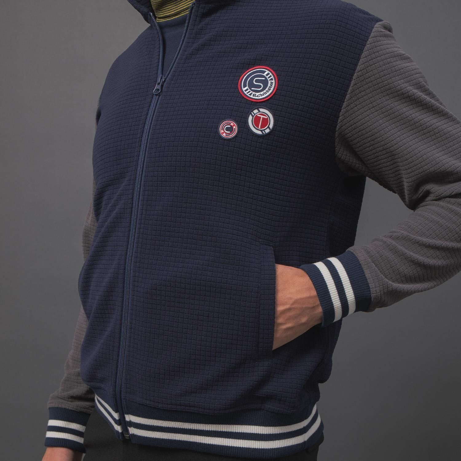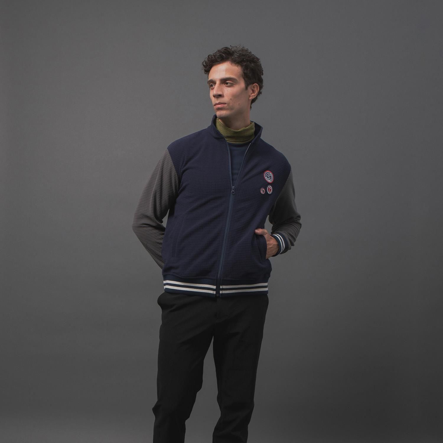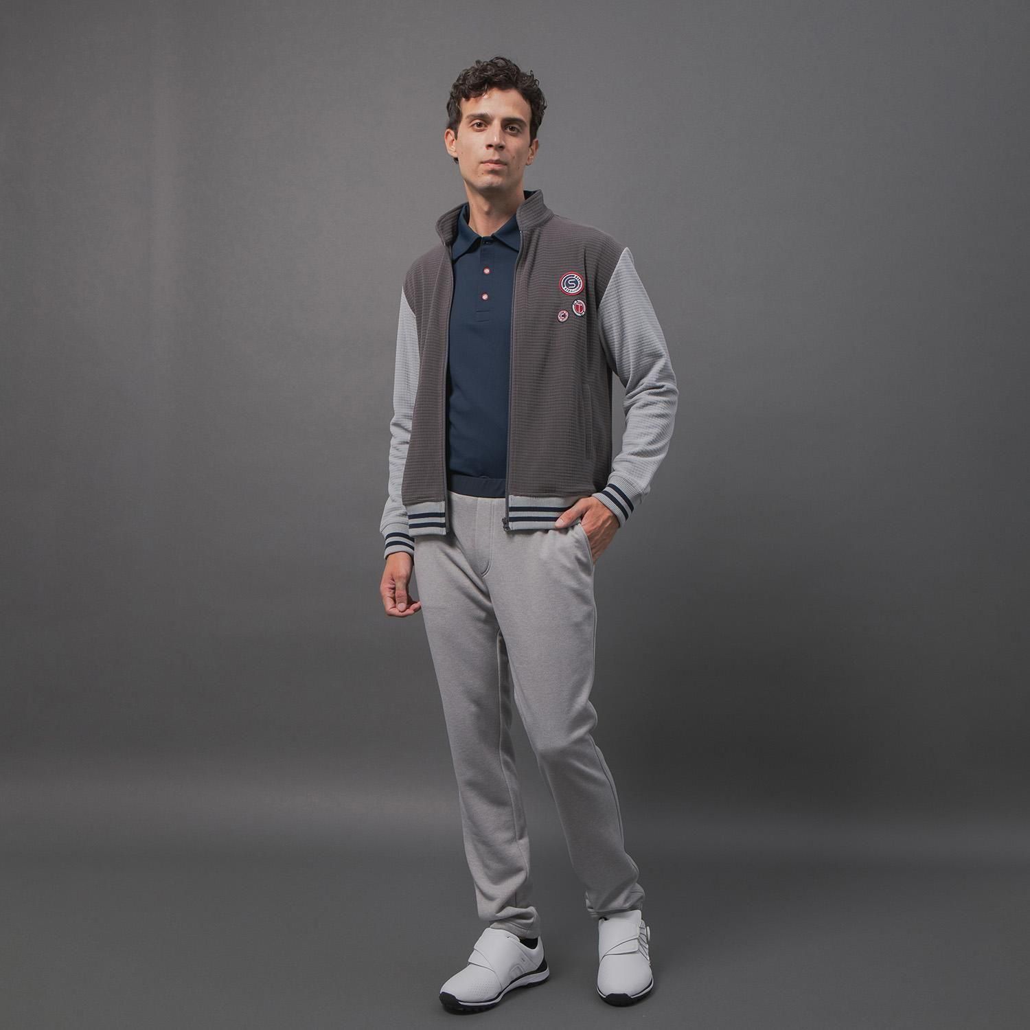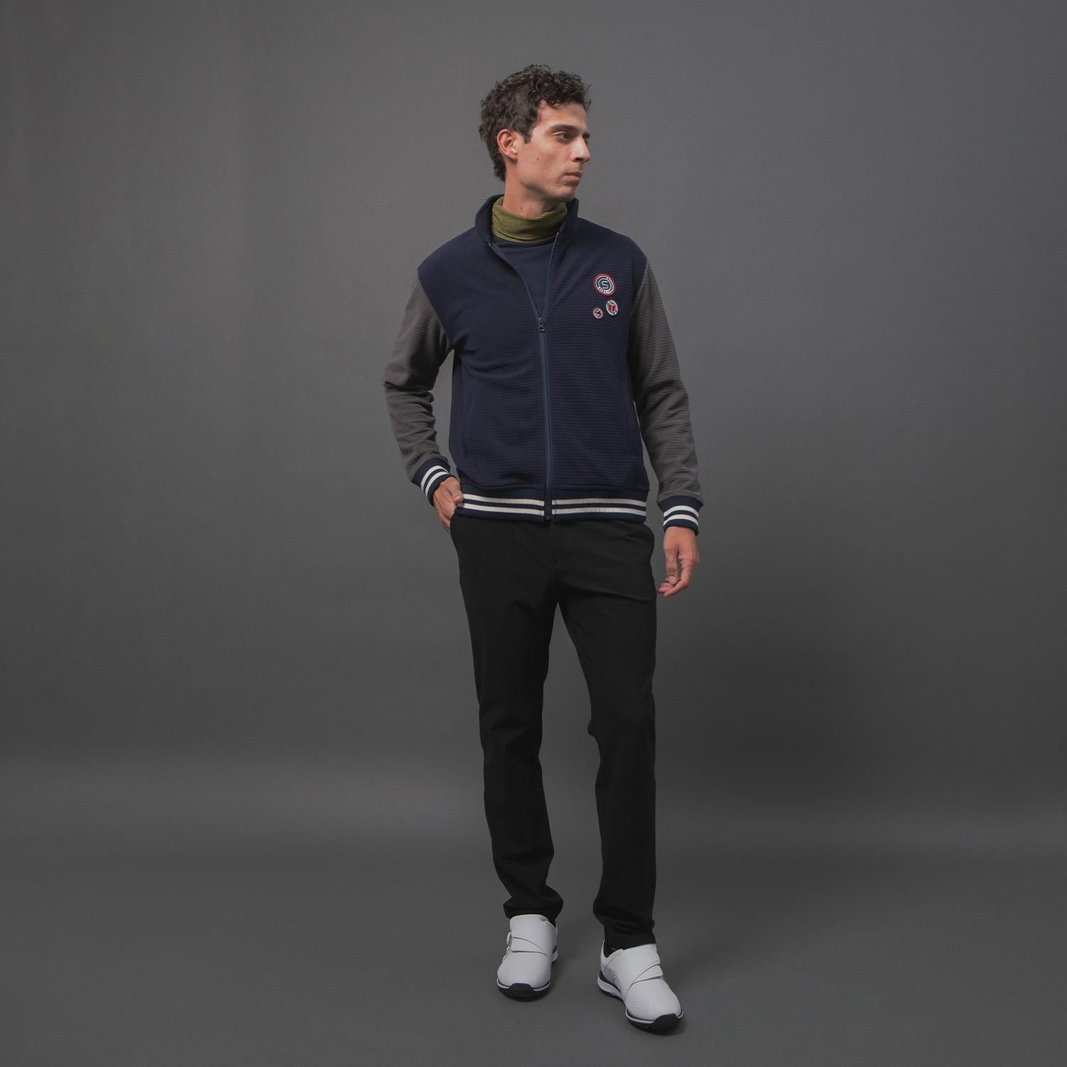 軽量で保温性に優れ、毛玉ができにくい上質なチェックフリース素材を使用したトラックジャケットです。素材特有の凹凸感が立体的な表情を生み出し、着るだけで一味違う垢抜けた印象を演出します。袖とボディの配色を切り替えることで、単調にならず、秋冬らしい深みのあるカラーリングに仕上げました。袖口と裾にはリブをあしらい、ネイビーにはホワイト、グレーにはネイビーを組み合わせ、シックでありながら存在感のあるコントラストを構築。全体の印象をキリッと引き締めています。