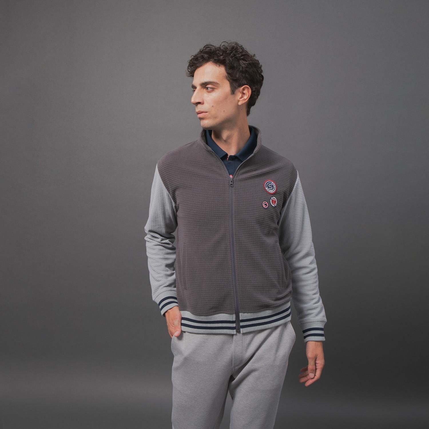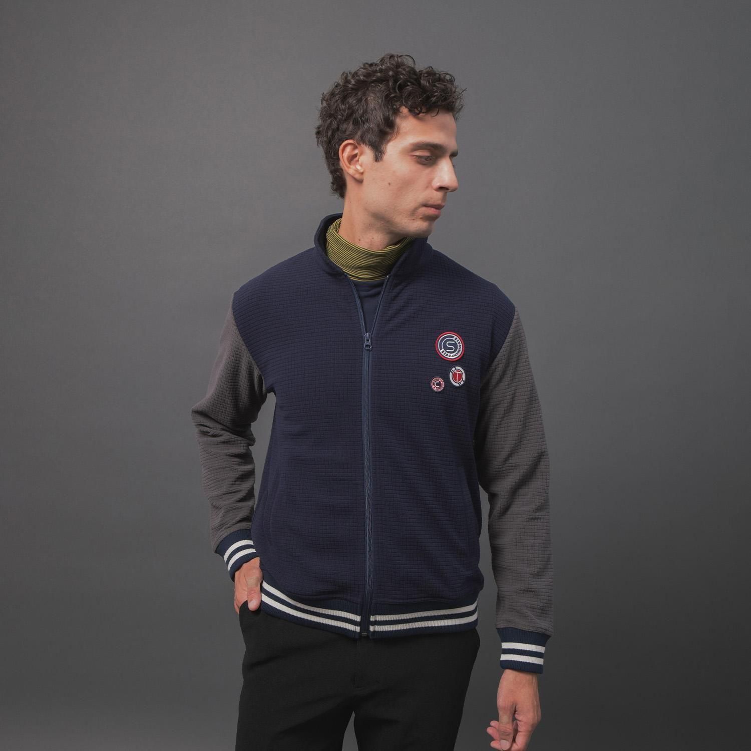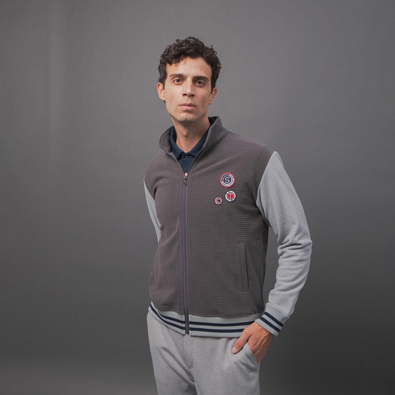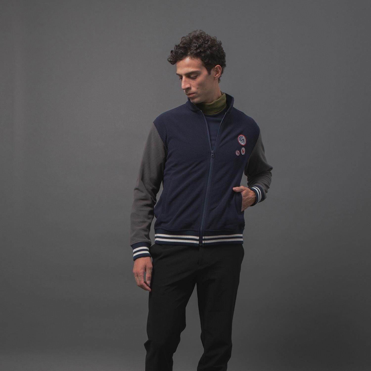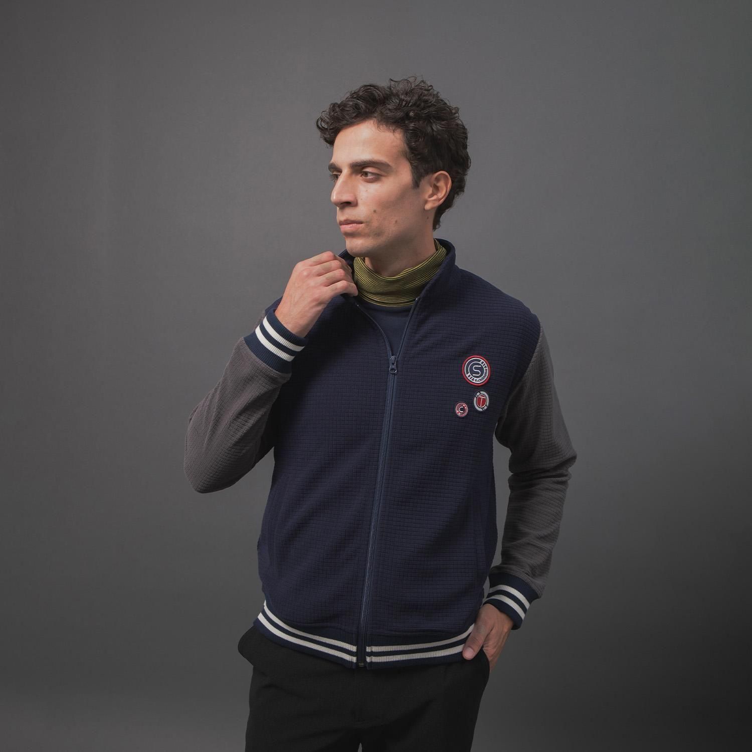 軽量で保温性に優れ、毛玉ができにくい上質なチェックフリース素材を使用したトラックジャケットです。素材特有の凹凸感が立体的な表情を生み出し、着るだけで一味違う垢抜けた印象を演出します。袖とボディの配色を切り替えることで、単調にならず、秋冬らしい深みのあるカラーリングに仕上げました。袖口と裾にはリブをあしらい、ネイビーにはホワイト、グレーにはネイビーを組み合わせ、シックでありながら存在感のあるコントラストを構築。全体の印象をキリッと引き締めています。