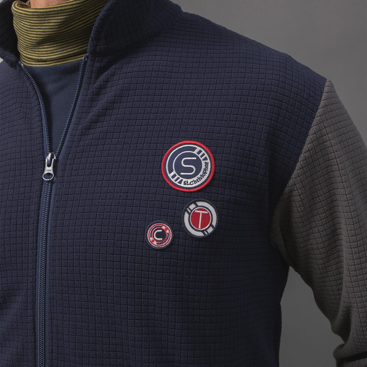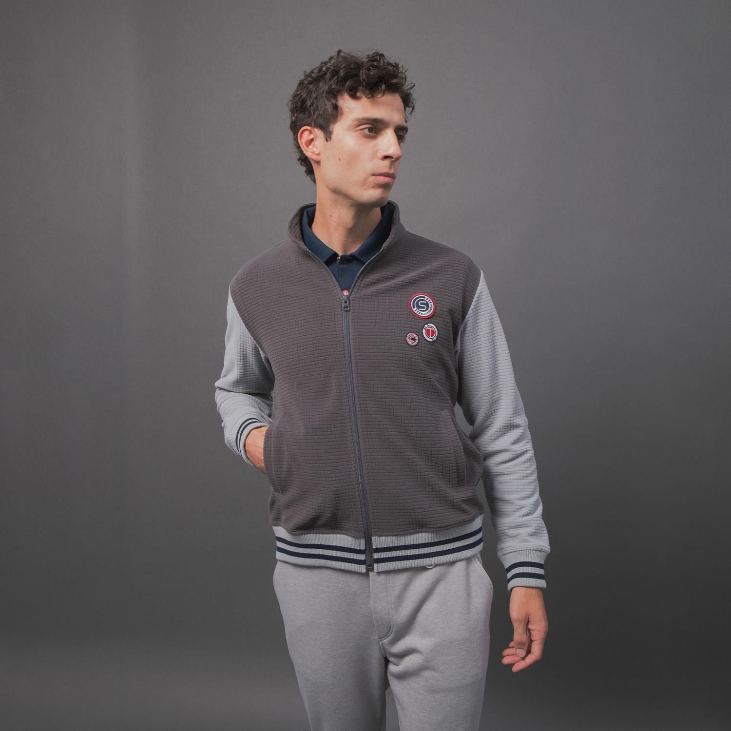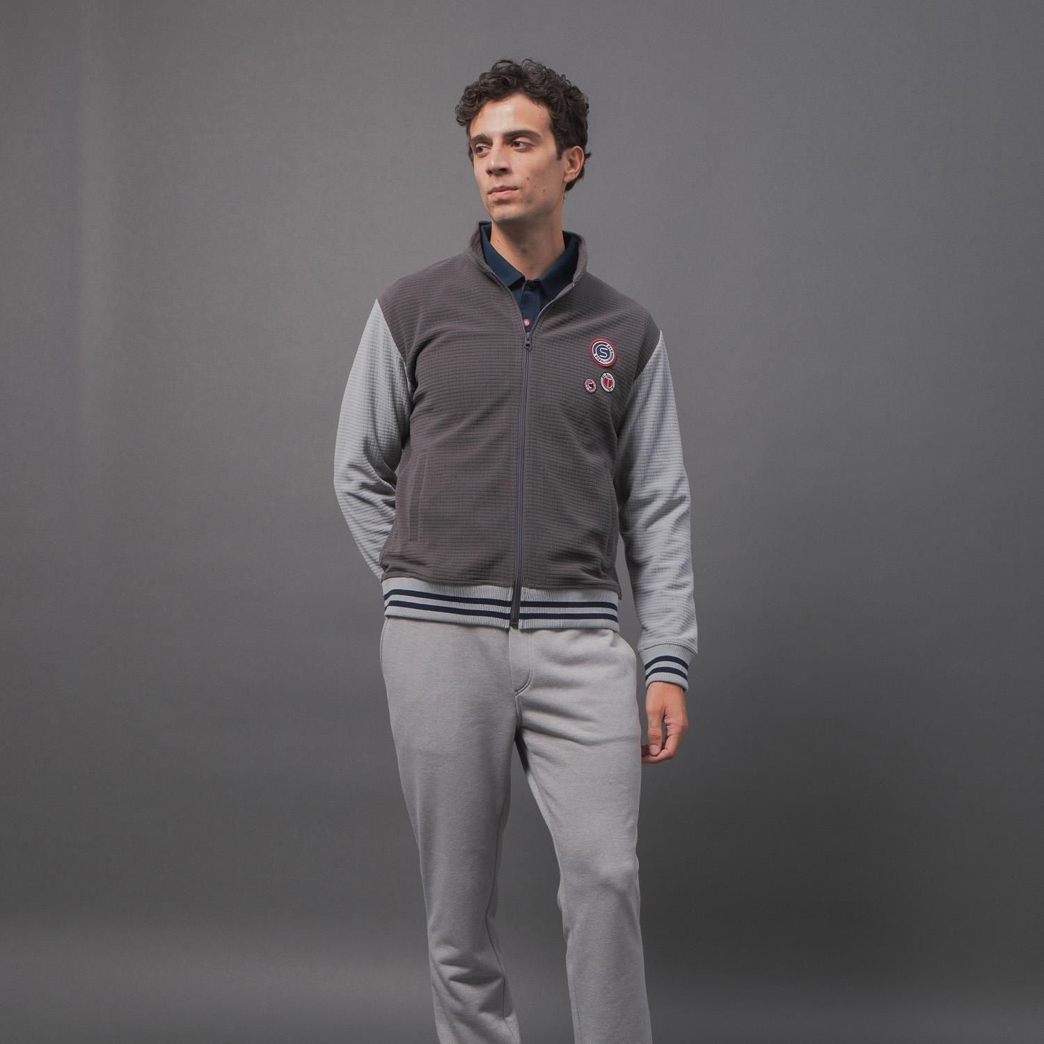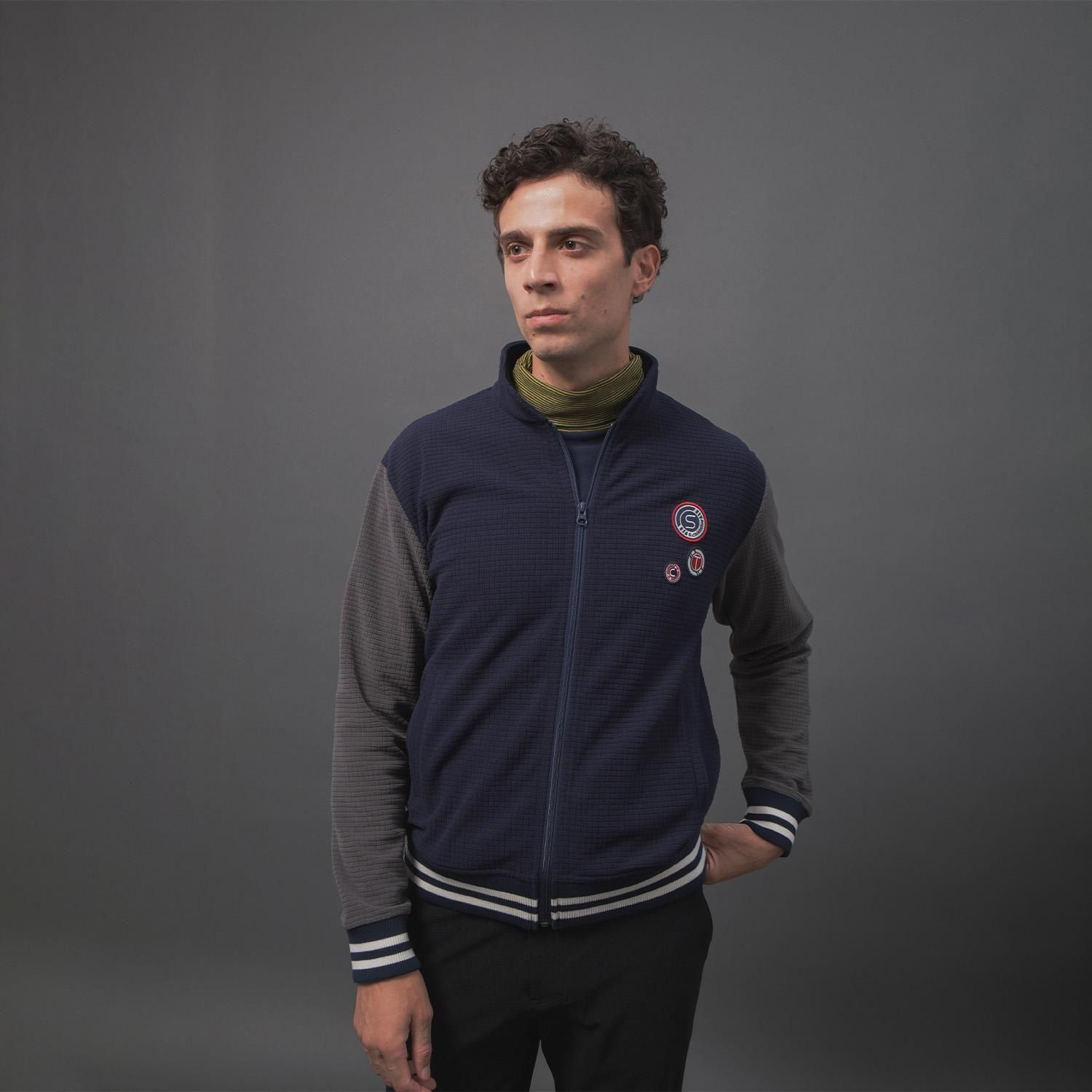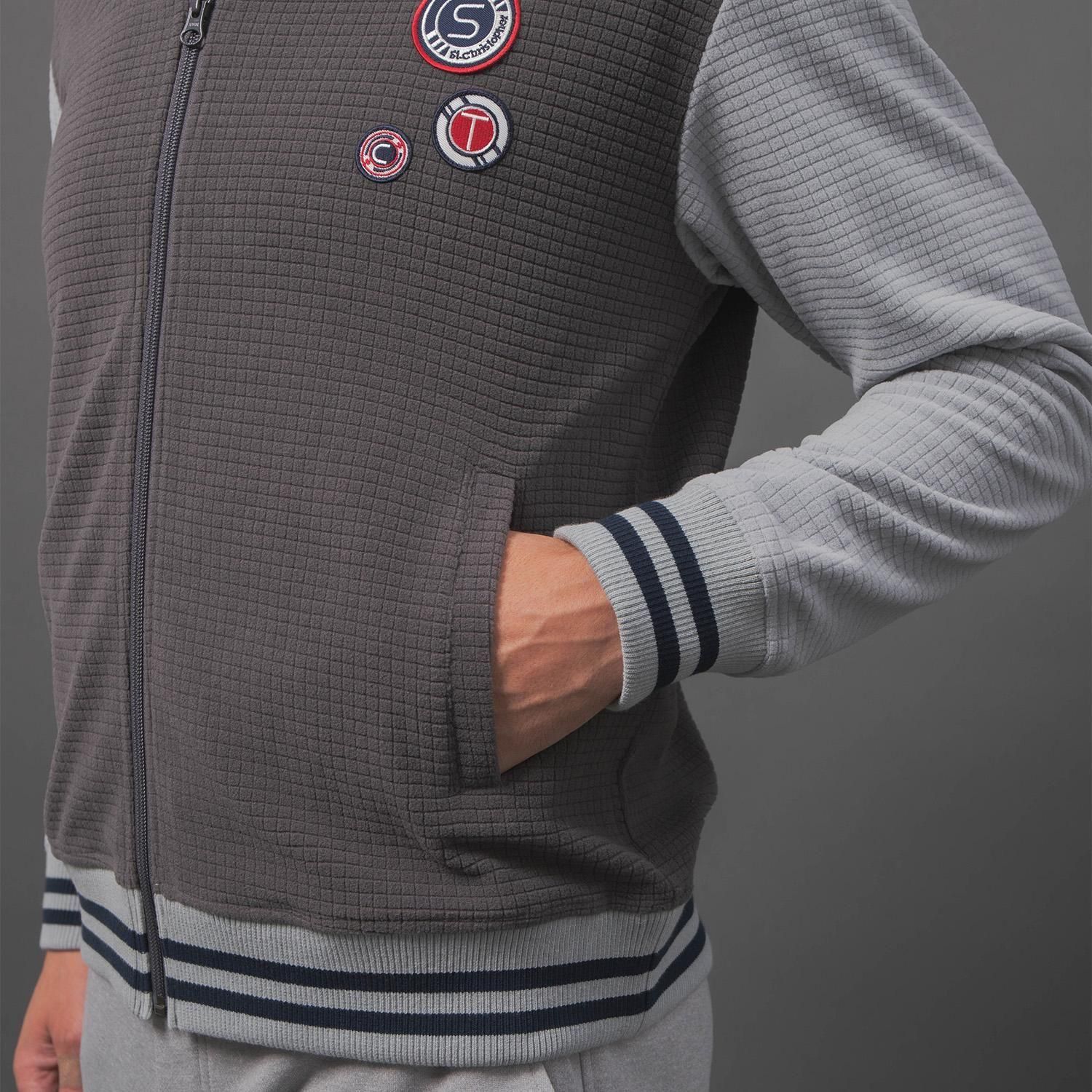 軽量で保温性に優れ、毛玉ができにくい上質なチェックフリース素材を使用したトラックジャケットです。素材特有の凹凸感が立体的な表情を生み出し、着るだけで一味違う垢抜けた印象を演出します。袖とボディの配色を切り替えることで、単調にならず、秋冬らしい深みのあるカラーリングに仕上げました。袖口と裾にはリブをあしらい、ネイビーにはホワイト、グレーにはネイビーを組み合わせ、シックでありながら存在感のあるコントラストを構築。全体の印象をキリッと引き締めています。