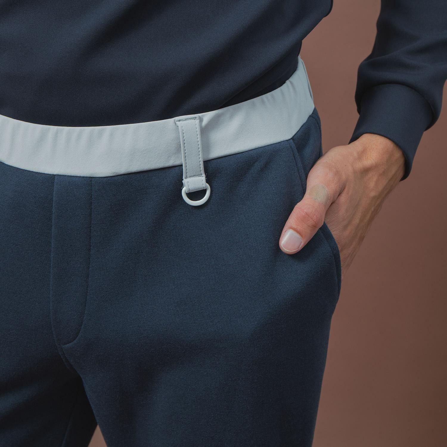 滑らかな肌触りとストレッチ性を備えた上質なスウェット素材を使用したイージーパンツです。ウエストや腰まわりにはゆとりを持たせつつ、裾にかけてシャープに絞ったシルエットが、無駄な膨らみを抑え、スッキリとした印象に。見た目のスマートさと機能的な動きやすさを両立した、まさに機能美を追求した一本です。